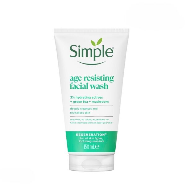 ژل شستشو ضد پیری سیمپل مدل Age Resisting برای شستشوی روزانه صورت تولید شده است و میتواند آرایش، آلودگی و گرد و غبار موجود بر روی پوست را بهطور موثر پاکسازی و آن را سمزدایی میکند.