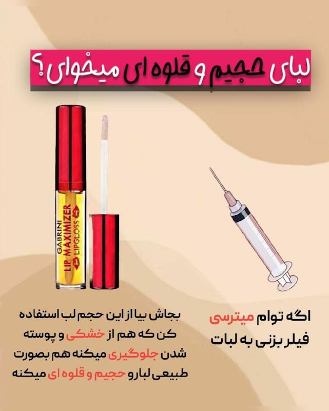 اگر شما هم می خواهید با هزینه خیلی کم و بدون درد و تزریق لب های خود را حجم دهید ،پیشنهاد می کنم از ژل و برق لب حجم دهنده فوری گابرینی استفاده کنید.