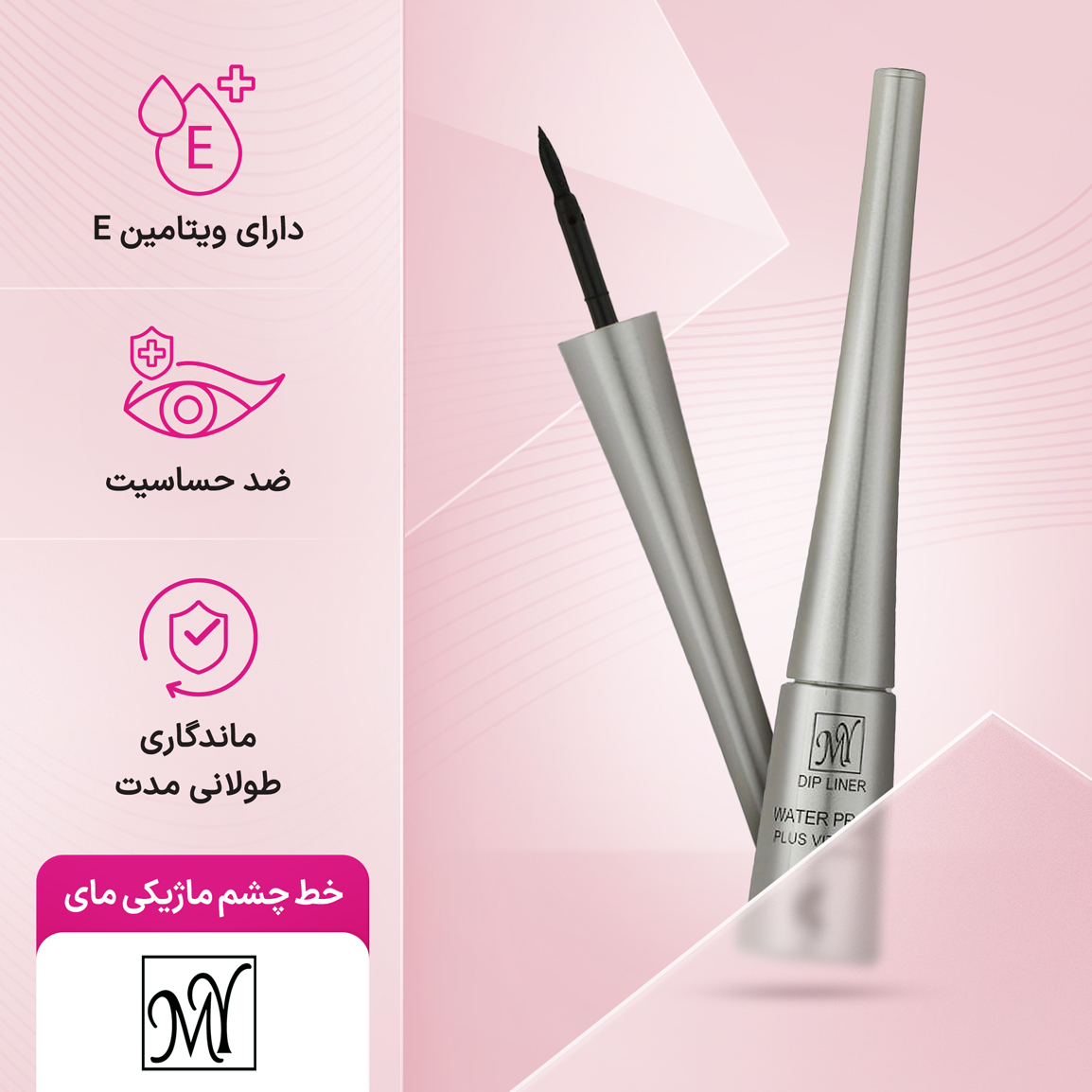 خط چشم مای ضد آب است. این خط چشم ماندگاری بالایی داشته و به مدت طولانی بدون ریزش بر روی پلک باقی می‌ماند. این محصول حاوی ویتامین E و ترکیبات مرطوب کننده است و پوست حساس دور چشم را به هیچ عنوان خشک و آسیب دیده نمی‌کند. این محصول بدون دردسر و با استفاده از محصولات چشم پاک کن به راحتی پاک می‌شود.