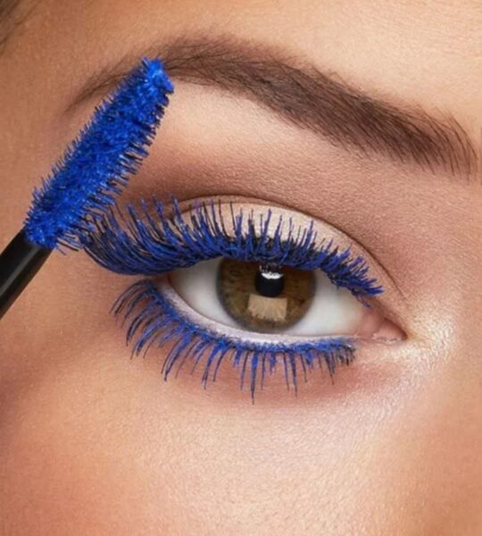 ریمل گلیتری کاریته Karite رنگ آبی، جلوه‌ای درخشان و جذاب به مژه‌ها می‌دهد.