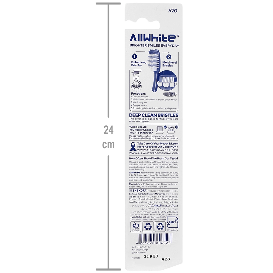 مسواک اکشن کلین مدیوم آل وایت