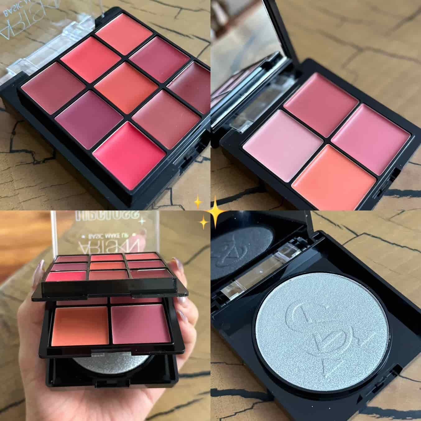 - هر پالت شامل 9 رنگ رژ + 4 رنگ رژگونه + 1 رنگ هایلایتر