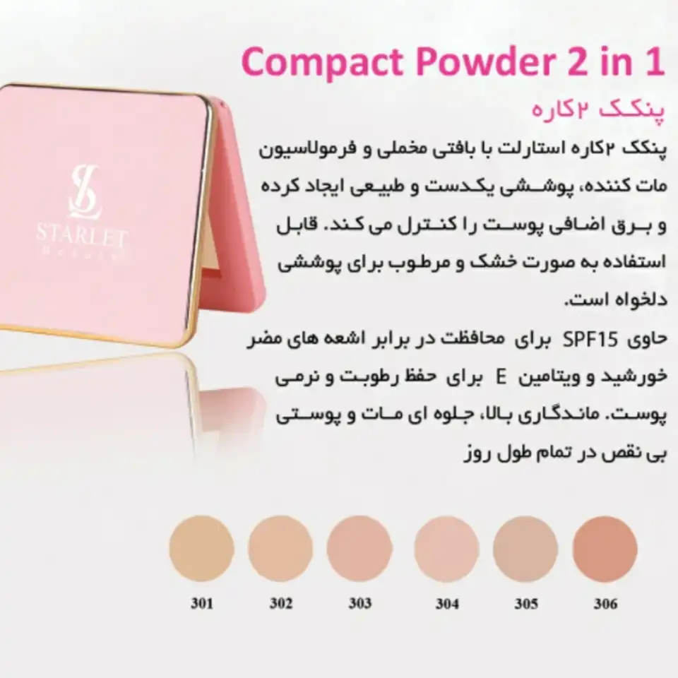 پنکک ویتامینه دو کاره استارلت شماره 302/ Starlet Two Way Cake Compact Powder