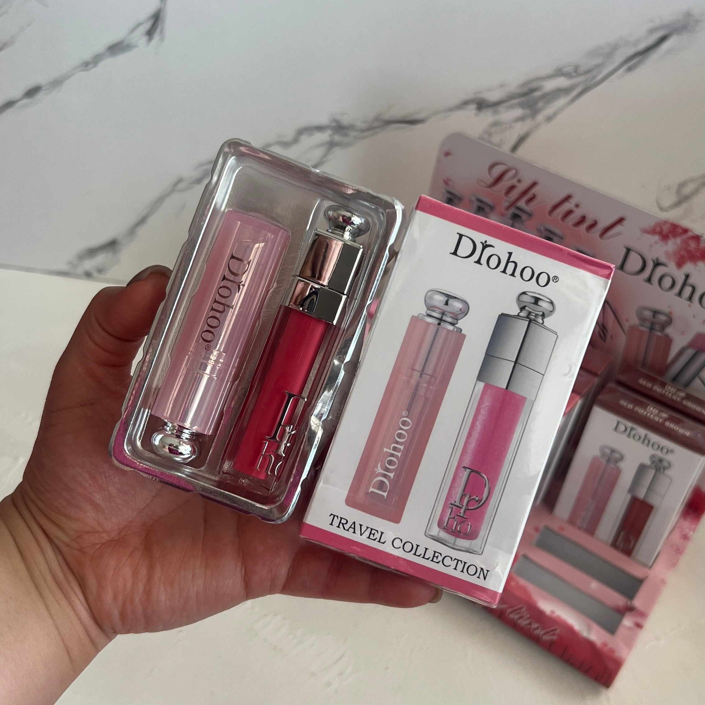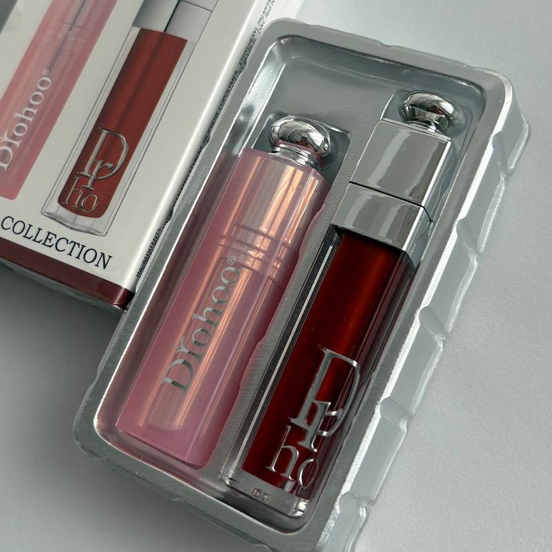 این پک شیک و کاربردی شامل دو محصول لب جذاب در بستهبندی شفاف و قابلحمل است که الهامگرفته از مجموعههای لوکس دیور میباشد. ترکیب این دو محصول، انتخابی ایدهآل برای خانمهایی است که به دنبال زیبایی، لطافت و مراقبت همزمان از لبهای خود هستند.