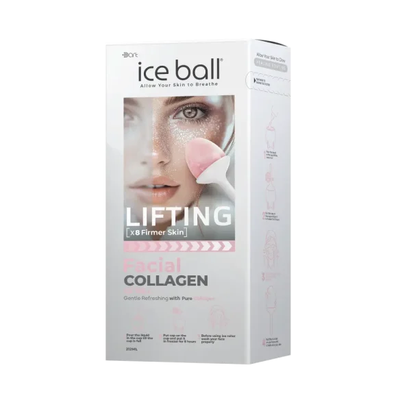 ژل آبرسان کلاژن لیفتینگ صورت آیس بال با حجم 212 میلی‌لیتر (محلول داخلی)، محصولی است که با استفاده از سرما و خواص کلاژن خالص، پوست شما را تا 6 برابر سفت‌تر و لیفت شده نشان می‌دهد. این گوی یخی با طراحی ارگونومیک، ماساژ صورت را آسان کرده و به کاهش خطوط ریز، بهبود گردش خون و جذب بهتر مواد مغذی کمک می‌کند. عبارت “Allow Your Skin to Glow” (اجازه دهید پوستتان بدرخشد) بر روی جعبه، نشان‌دهنده تاکید بر درخشندگی و شادابی پوست است. این محصول یک تجربه اسپای خانگی را برای داشتن پوستی جوان‌تر، سفت‌تر و درخشان فراهم می‌آورد.