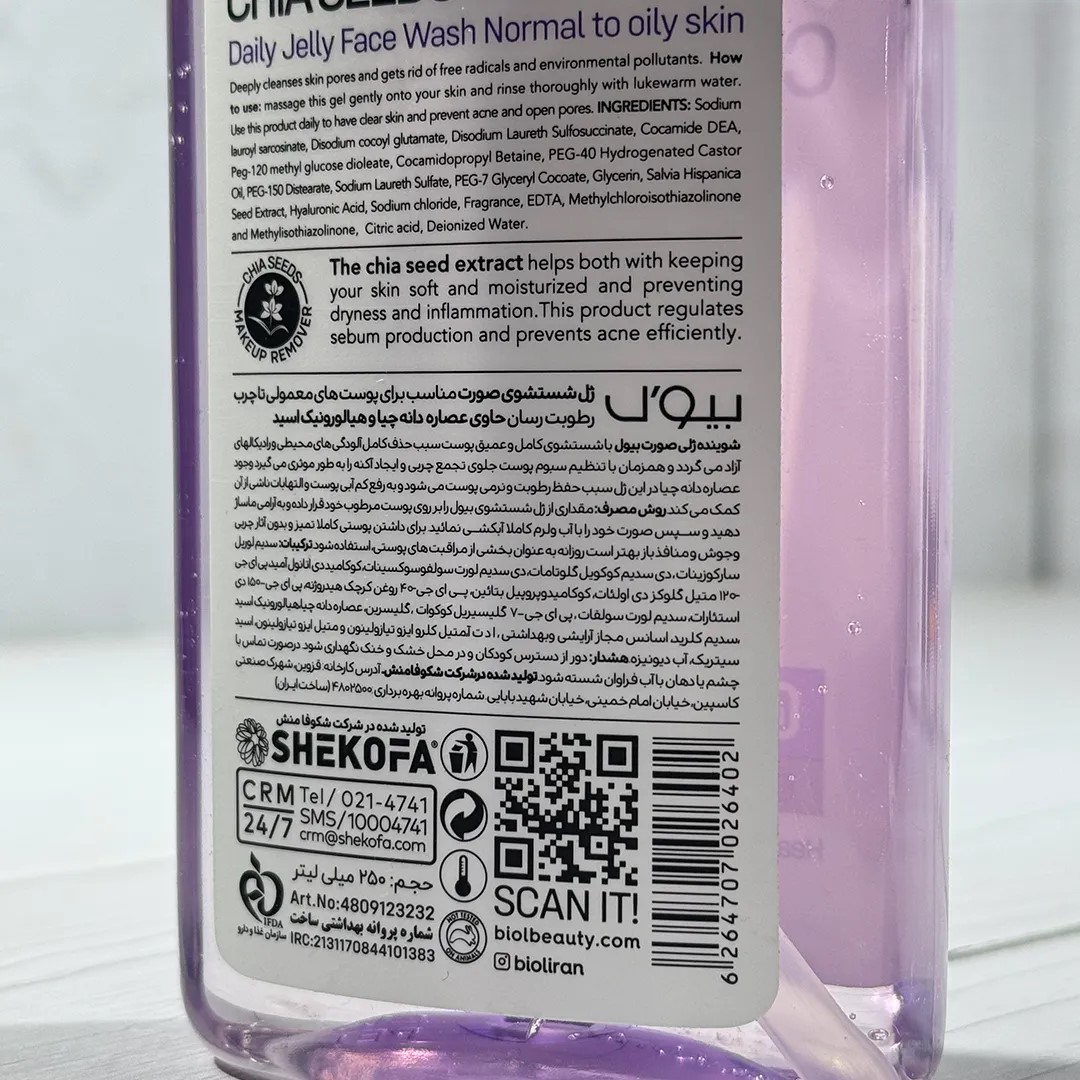 خواص ژل شستشوی صورت بیول مدل CHIA SEEDS