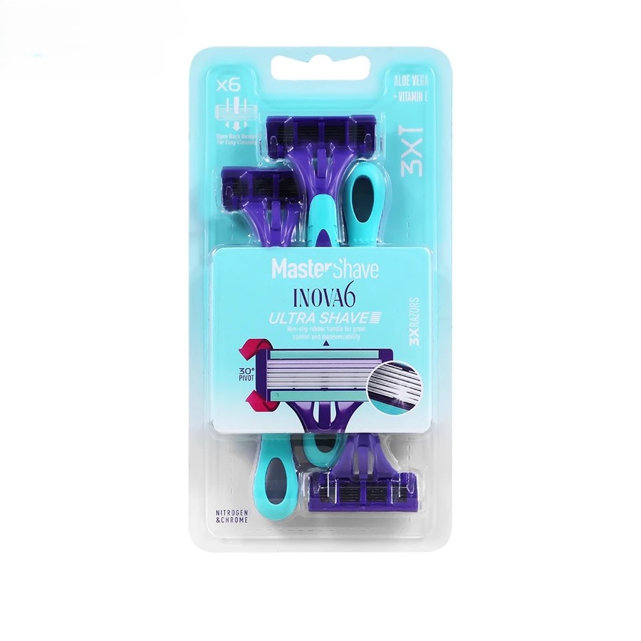 سری با قابلیت انعطاف و چرخش این محصول به شما اجازه می‌ دهد در تمام انحناها و خطوط صورت با دقت حرکت کنید. در کنار آن، دسته ارگونومیک و ضد لغزش خود تراش شش لبه مدل INOVA6 مستر شیو، کنترل کامل و راحتی را در دست شما قرار می‌ دهد. این خود تراش هم مناسب استفاده روزمره است و هم به دلیل کیفیت بالای تیغه‌ ها قابلیت استفاده چندباره دارد. بسته ۳ عددی این محصول موجب شده تا هم از نظر اقتصادی به‌ صرفه باشد و هم همیشه یک اصلاح آماده و حرفه‌ ای در دسترس داشته باشید.